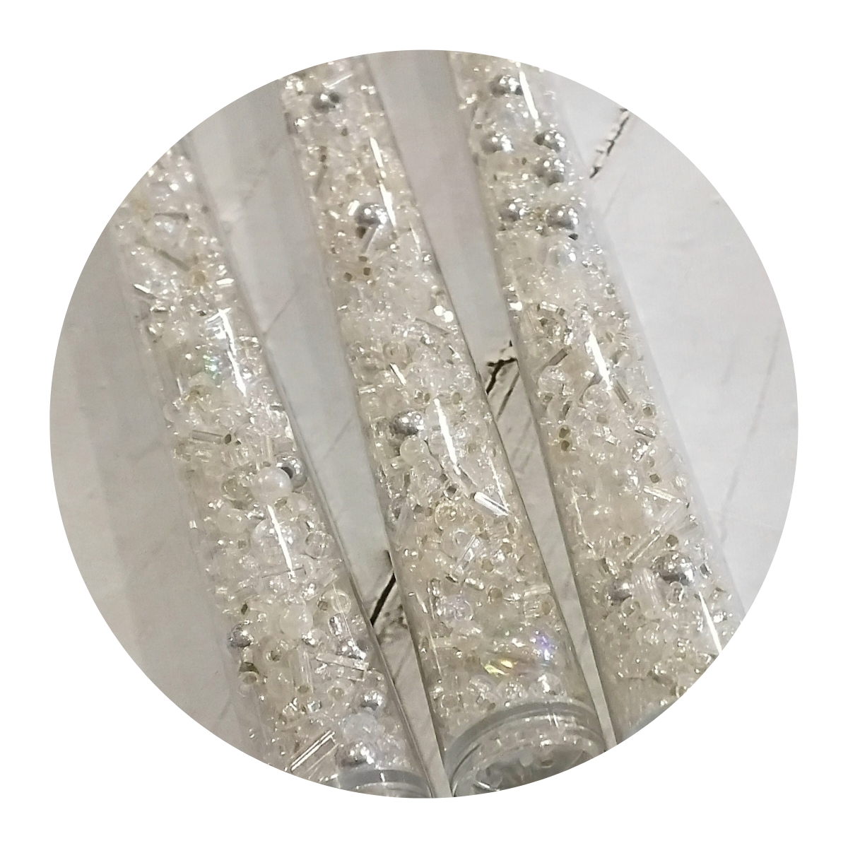 Each tube contains a mix of glass beads including:
