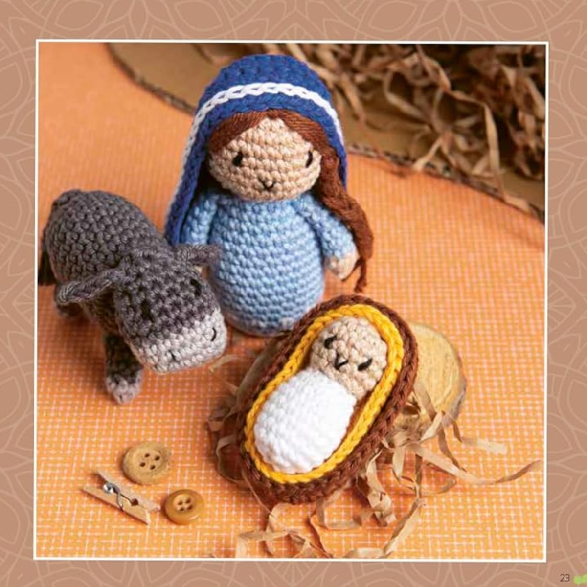 Crochet the whole cast of the nativity, including: