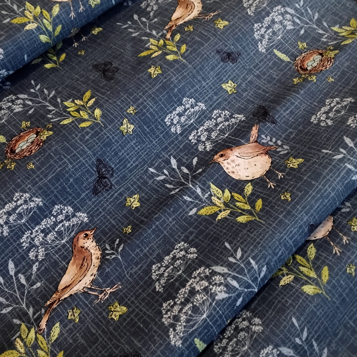 Colour: Denim Blue, Beiges, Greens Creams